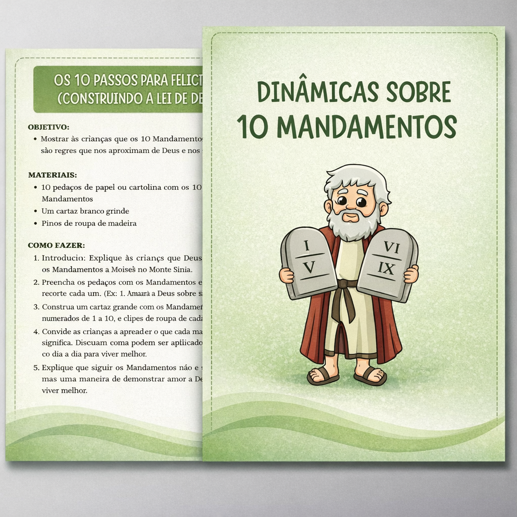 Ajude as crianças a entender e aplicar os Mandamentos no dia a dia com atividades claras e práticas.