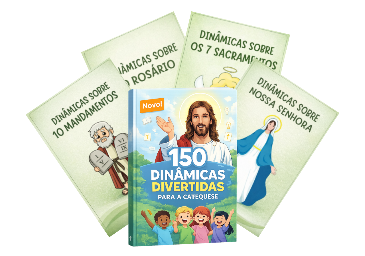 São 150 Dinâmicas Práticas e Divertidas que tornarão seus encontros de catequese mais animados, ajudando as crianças a aprender e aplicar a fé de forma divertida e fácil.