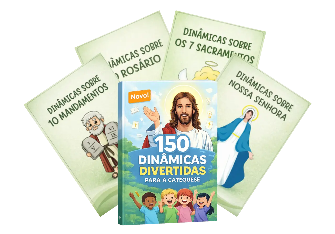 São 150 dinâmicas prontas! Chega de crianças distraídas ou entediadas na catequese. Com essas dinâmicas, você manterá a atenção delas enquanto ensina a fé de forma criativa e marcante.